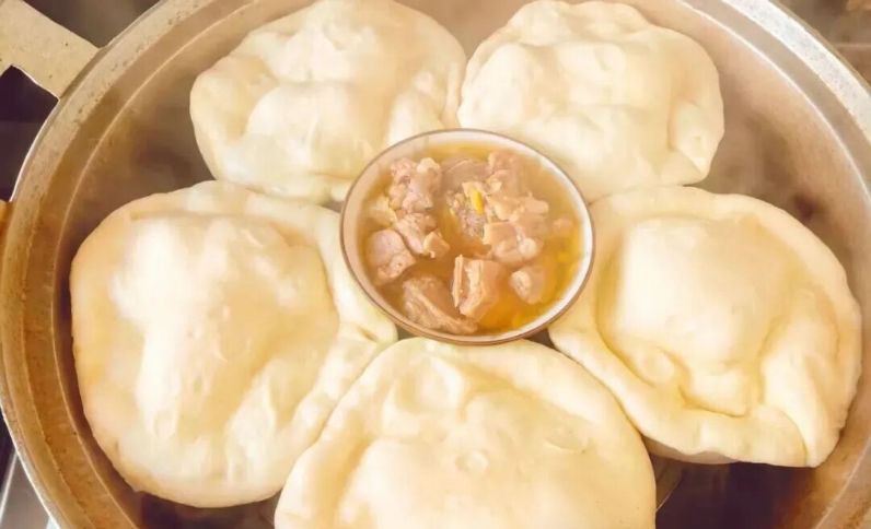 选材与烹制:首选宁夏本地的滩羊羔,最佳是哺乳期(15-30天)或刚断奶(2-3个月) 的羊羔。此时的羊肉质最为细嫩、肥瘦相宜,口感最佳。带骨剁成小块。将羊肉与葱段、姜片、花椒等调料一同装入粗陶碗或小瓷盆,加入少量水,在碗口盖上面章,然后放入蒸笼,隔水长时间旺火蒸制。