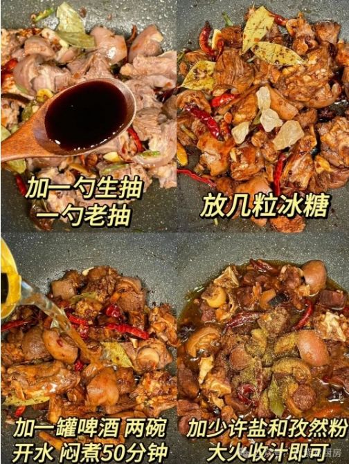 调味料:料酒、豆瓣酱、生抽、老抽、冰糖、盐、孜然粉