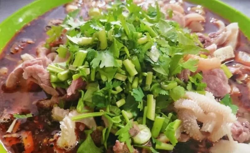 选材与烹制:将羊的心、肝、肺、肚、肠等“下水”彻底清洗干净,一同放入羊骨高汤中长时间熬煮。其中最独特的是“面肺”,将面粉灌入羊肺中煮熟,形成独特的口感。吃的时候,将杂碎切碎放入碗中,浇上滚烫的原汤,最后点睛之笔是一大勺油泼辣子。
